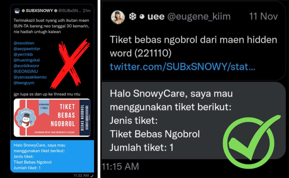 2. Kirim tweet/ss tiket yang kamu punya ke dm @SUBxSNOWY