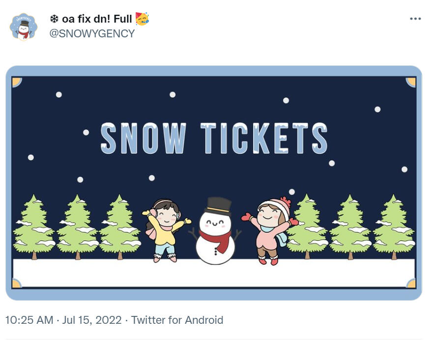 3. SnowyCare akan memberikan tanda "tiket di ACC" jadi tidak bisa mengirimkan tiket secara anonim.Untuk transfer tiket, snowkidz bisa melakukannya melalui DM