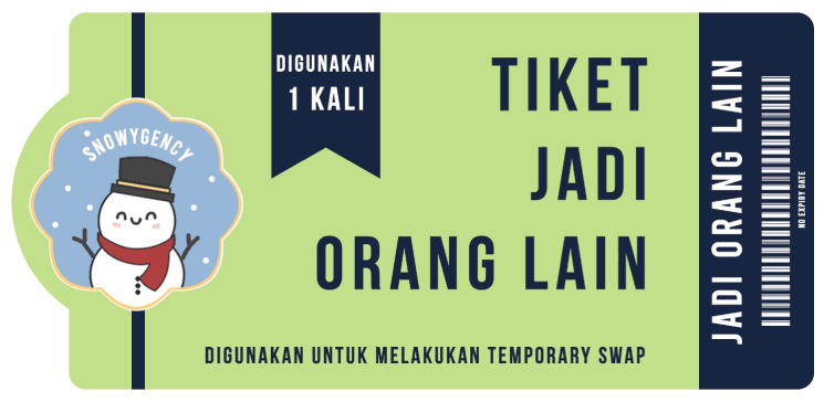 Merupakan tiket yang bisa digunakan untuk memperpanjang hiatus dengan total 3 hari tambahan. Tiket ini juga bisa digunakan untuk mengambil Hiatus selama 3 hari apabila belum memiliki jatah hiatus.6. Tiket Jadi Orang Lain (Temporary Swap)